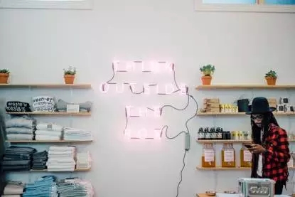 這里的一切商品都沒有包裝——正如店名,“Package Free Shop”。一踏進店里,墻壁上分外醒目的粉色霓虹燈字樣是“Think Outside The Box”。