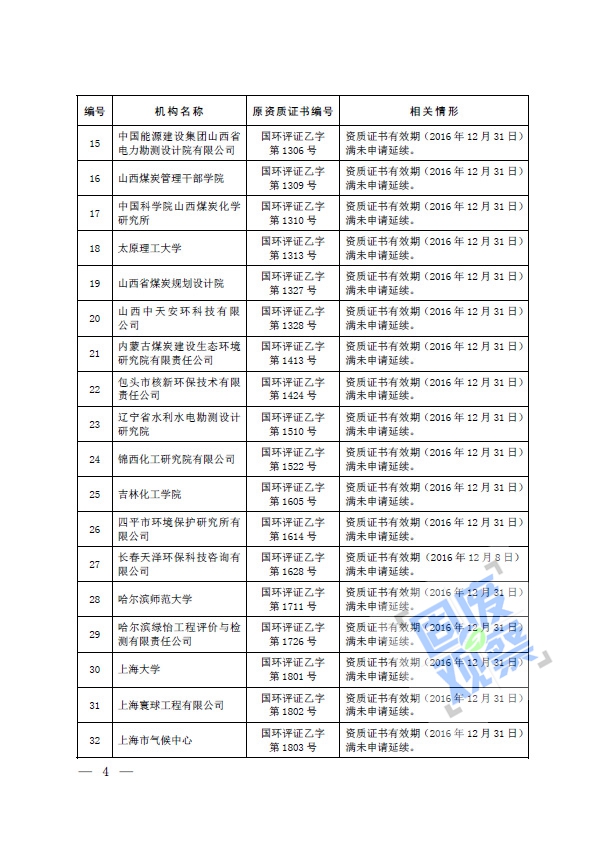 根據(jù)《建設(shè)項(xiàng)目環(huán)境影響評(píng)價(jià)資質(zhì)管理辦法》(環(huán)境保護(hù)部令第36號(hào))規(guī)定,資質(zhì)證書(shū)有效期屆滿,環(huán)評(píng)機(jī)構(gòu)需要繼續(xù)從事環(huán)境影響報(bào)告書(shū)(表)編制工作的,應(yīng)當(dāng)在有效期屆滿九十個(gè)工作日前申請(qǐng)資質(zhì)延續(xù)。資質(zhì)有效期屆滿未申請(qǐng)延續(xù)的,我部予以注銷(xiāo)資質(zhì)。請(qǐng)各環(huán)評(píng)機(jī)構(gòu)在規(guī)定期限內(nèi)及時(shí)向我部提交資質(zhì)延續(xù)申請(qǐng)材料。