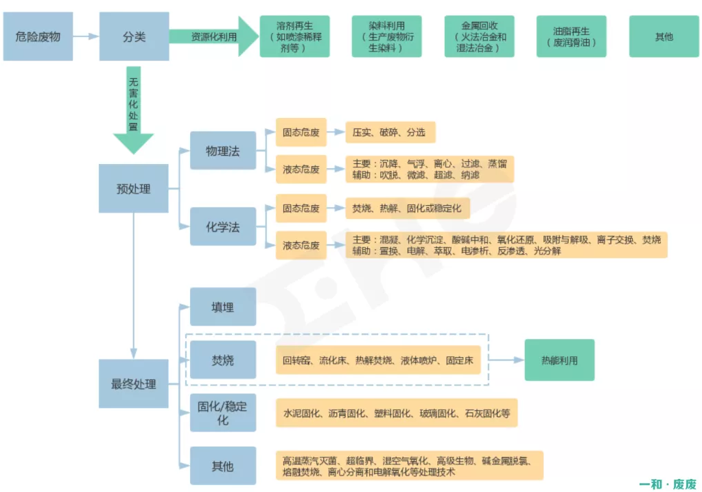 我國(guó)危廢治理主要以無(wú)害化處置和資源化利用為主,資源化利用仍是危廢處理的主要方式,無(wú)害化處置的比例正在逐年上升。目前我國(guó)無(wú)害化處置的主要方式是焚燒、填埋、水泥窯協(xié)同等。其中水泥窯協(xié)同處置被譽(yù)為處理過(guò)程最安全、處理結(jié)果最徹底方式之一,日益成為危廢處理的主流。