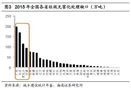 以人均垃圾產(chǎn)生量1.2kg/日來計(jì)算,2015年我國(guó)城鎮(zhèn)垃圾生產(chǎn)總量為3.38億噸,而2015年我國(guó)垃圾清運(yùn)量為1.91億噸,對(duì)應(yīng)缺口巨大。