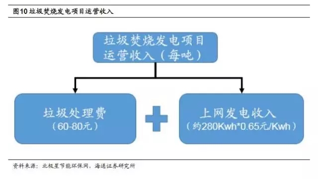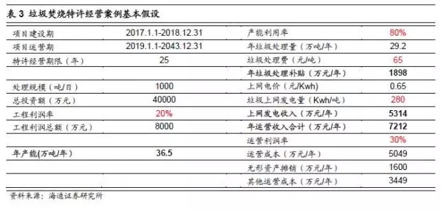 BOT模式下,垃圾焚燒項(xiàng)目的收入主要來自建設(shè)階段的工程收入和運(yùn)營(yíng)階段的運(yùn)營(yíng)收入。垃圾焚燒發(fā)電項(xiàng)目運(yùn)營(yíng)階段收入主要為垃圾處理費(fèi)(政府補(bǔ)貼)以及上網(wǎng)發(fā)電收入。不同項(xiàng)目的垃圾處理費(fèi)價(jià)格差異較大,大致在50-150元/噸的區(qū)間里,目前大部分項(xiàng)目的平均水平在60-80元/噸。根據(jù)2012年4月發(fā)布的《國(guó)家發(fā)展改革委關(guān)于完善垃圾焚燒發(fā)電價(jià)格政策的通知》,每噸生活垃圾折算上網(wǎng)電量為280千瓦時(shí),執(zhí)行全國(guó)統(tǒng)一垃圾發(fā)電標(biāo)桿電價(jià)每千瓦時(shí)0.65元(含稅,增值稅即征即退);超過部分電量執(zhí)行當(dāng)?shù)赝惾济喊l(fā)電機(jī)組上網(wǎng)電價(jià)。