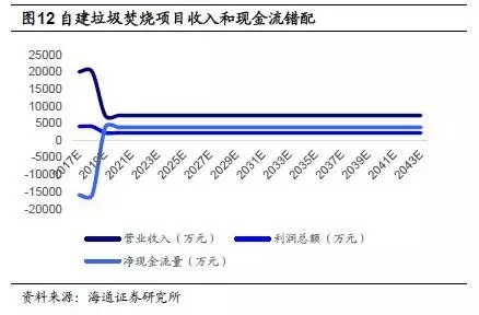 對(duì)于自建的垃圾焚燒BOT項(xiàng)目,其收入和現(xiàn)金流錯(cuò)配,項(xiàng)目建設(shè)階段確認(rèn)的工程收入較多,確認(rèn)的利潤(rùn)也通常較高,但沒有實(shí)際的現(xiàn)金流入,運(yùn)營(yíng)階段項(xiàng)目的收入降低,但是有穩(wěn)定的經(jīng)營(yíng)性現(xiàn)金流入。項(xiàng)目回收期較長(zhǎng),考驗(yàn)公司資金實(shí)力和融資能力。
