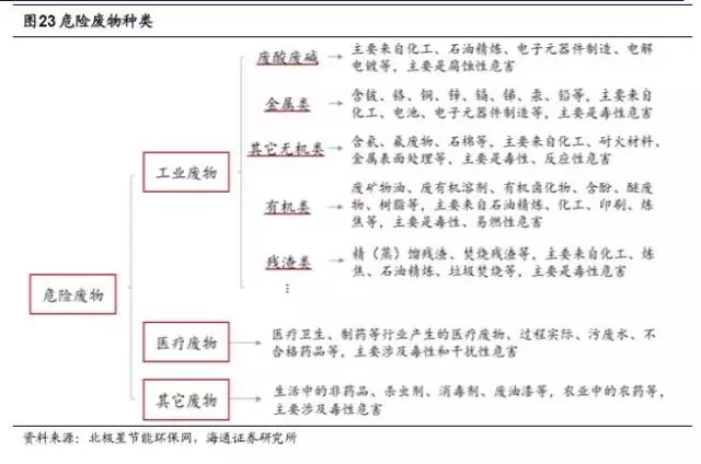 工業(yè)危廢是危險(xiǎn)廢物的主要來源,具體危廢類型包括廢堿、廢酸、石棉廢物、有色金屬冶煉廢物、無機(jī)氰化物廢物、廢礦物油等,從上游行業(yè)看,主要來自化學(xué)原料和化學(xué)制品制造業(yè)、有色金屬冶煉和壓延加工業(yè)、非金屬礦采選業(yè)、造紙和紙制品業(yè)、有色金屬礦采選業(yè)等。