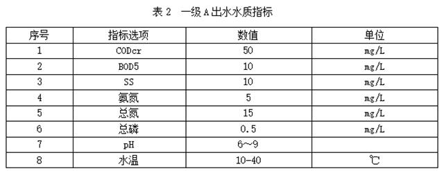 原水經(jīng)處理后,出水水質(zhì)達(dá)到《城鎮(zhèn)污水處理廠污染物排放標(biāo)準(zhǔn)》一級(jí)A標(biāo)準(zhǔn)或參照《地表水環(huán)境質(zhì)量標(biāo)準(zhǔn)》IV類(lèi)水的準(zhǔn)四類(lèi)水達(dá)標(biāo)排放,水質(zhì)指標(biāo)見(jiàn)下表: