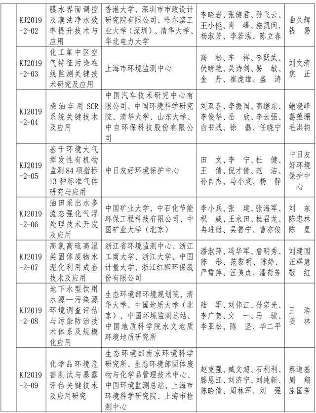 附:2019年度環(huán)境保護(hù)科學(xué)技術(shù)獎(jiǎng)獲獎(jiǎng)項(xiàng)目名單