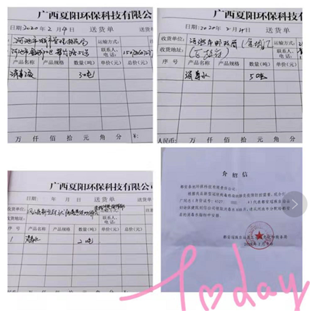 目前已捐贈的單位有中共廣西河池市統(tǒng)戰(zhàn)部、來賓市工信局、合山市政府、都安縣政府、天峨縣政府、象州縣政府、武宣縣政府、沂城縣政府、金秀縣城府、上思統(tǒng)戰(zhàn)部等,捐贈的消毒劑將投放于各級地方公共區(qū)域消毒使用,確保公眾區(qū)域的安全衛(wèi)生,保障人民群眾的安全健康。