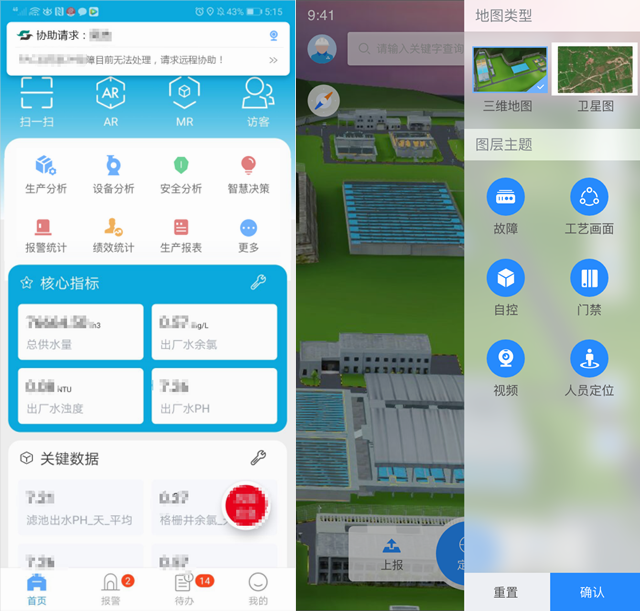 由于疫情防控需要,水廠運行值班人員需要實行封閉式管理。為了更好地減少運行人員與外界的接觸,光明水廠逐步推行“凌晨運行人員單人值守”方案,即由原來2人值班減少為1人,取消夜間巡檢;值班人員在中控室運用系統(tǒng)代替操作,用視頻巡檢代替人工巡檢,如有情況,安全預警及時自動報送。運行人員不在中控室的時候,也能夠通過手機APP端,實現(xiàn)對生產過程的全流程監(jiān)控,整個手機APP端變成了“口袋的中控室”。同時,智慧水廠運管平臺APP端讓管理人員在家就可以實時監(jiān)控生產,并處理部分日常工作中的行政事務。該方案自春節(jié)假期實施以來,取得了良好效果,水廠生產平穩(wěn),水質達標。