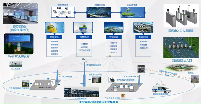 根據(jù)不同園區(qū)需求,提供環(huán)境空氣質量監(jiān)測設備(含標準站和微型站)、固定污染源VOC在線監(jiān)測設備、園區(qū)邊界環(huán)境質量監(jiān)測設備、廠界環(huán)境質量監(jiān)測設備、有毒有害氣體在線監(jiān)測設備、污染源廢水廢氣在線設備、地表水在線監(jiān)測設備、園區(qū)污水管網監(jiān)測設備、企業(yè)“兩重點、一重大”設施監(jiān)測設備、企業(yè)“電、煤、氣”等能源消耗監(jiān)控設備和園區(qū)公共安全監(jiān)測設備,構建園區(qū)全覆蓋式的安環(huán)感知體系。系統(tǒng)通過采集園區(qū)和企業(yè)的“安、環(huán)、能”實時數(shù)據(jù)和視頻,幫助園區(qū)管理者全面掌握園區(qū)環(huán)境污染排放和企業(yè)安全生產實況,為園區(qū)安環(huán)隱患提供預警。