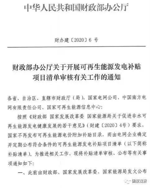 3月16日,財政部辦公廳印發(fā)《關(guān)于開展可再生能源發(fā)電補貼項目清單有關(guān)工作的通知》(財辦建〔2020〕6號),明確可再生能源項目進(jìn)入首批財政補貼目錄的條件。