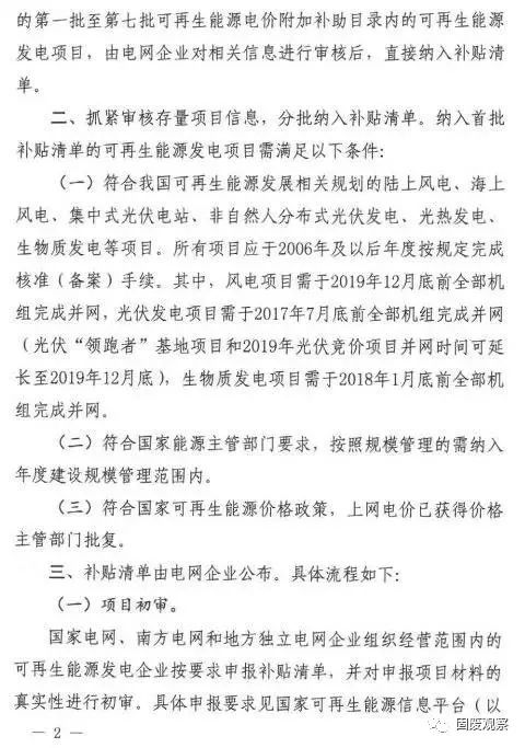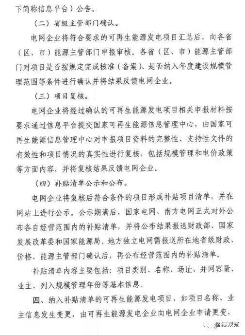 3、符合國家可再生能源價格政策,上網(wǎng)電價已獲得價格主管部門批復(fù)。根據(jù)文件要求,2020年4月30日前,應(yīng)完成第一階段補貼清單的審核發(fā)布工作;6月30日前,完成首批補貼清單的審核發(fā)布工作,并為下一批補貼清單審核發(fā)布做好準(zhǔn)備。