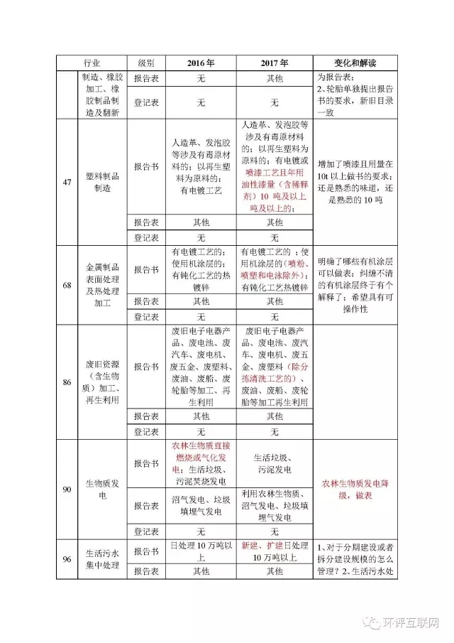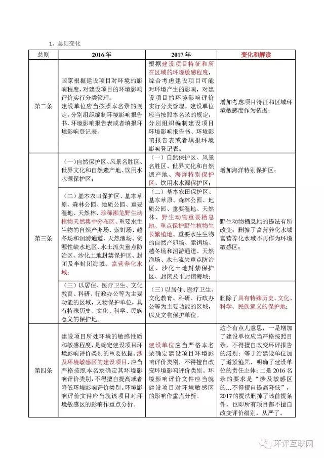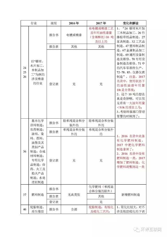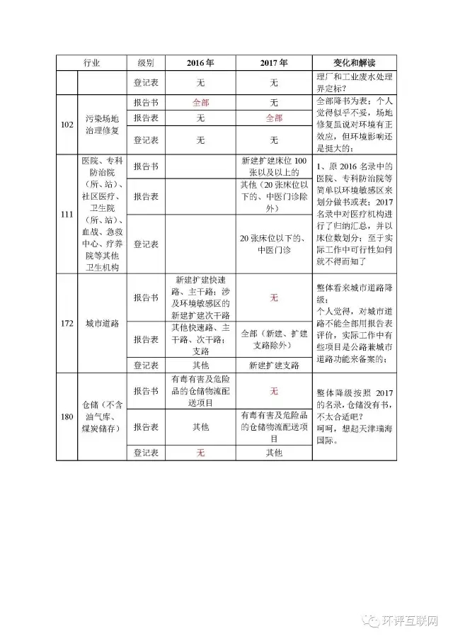 《建設(shè)項目分類管理名錄》2017版逐項PK2016版