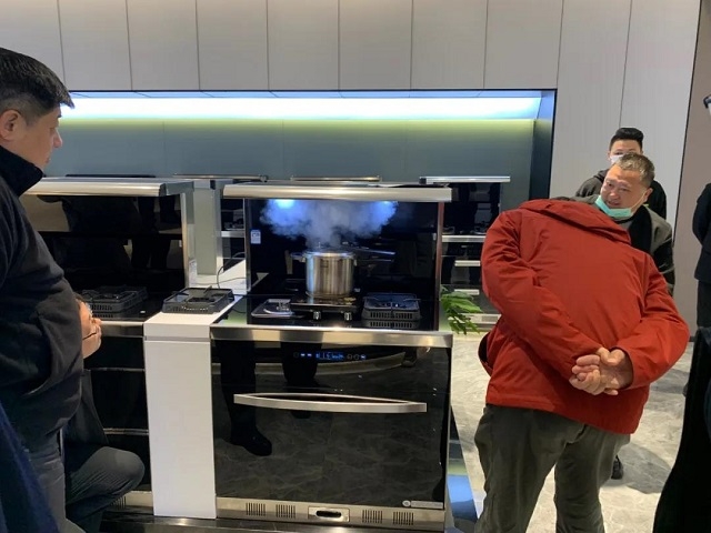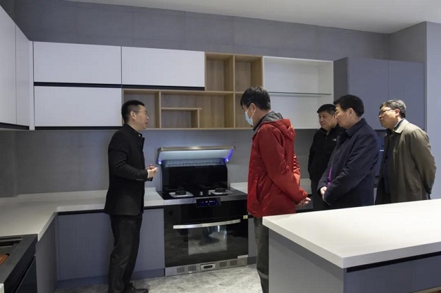 在結(jié)束參觀后,葉局長一行來到了永發(fā)機電的兄弟公司——廚壹堂集成灶參觀考察。在高總的陪同下,葉局長一行參觀了公司剛剛竣工的1000㎡+全新展廳,在近距離觀察和了解了廚壹堂系列集成灶的各項功能后,一眾領(lǐng)導(dǎo)對展廳的設(shè)計理念以及廚壹堂集成灶99.9%的油煙吸凈率大加贊賞。