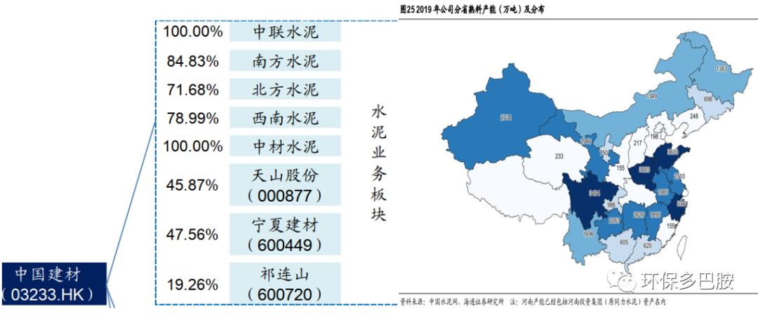 2019年海螺創(chuàng)業(yè)與水泥產(chǎn)能宇宙第一的中國建材(2019年公司水泥產(chǎn)能5.2億噸)成立合資公司:海建香港(股份各占50%,由海螺創(chuàng)業(yè)并表) ,并通過海建香港成立安徽海中環(huán)保開展業(yè)務(wù),全權(quán)負責投資、經(jīng)營及管理中國建材從事水泥相關(guān)業(yè)務(wù)的若干附屬公司現(xiàn)有及未來的固廢處置業(yè)務(wù),預(yù)計規(guī)劃處置總產(chǎn)能不少于 300 萬噸/年。