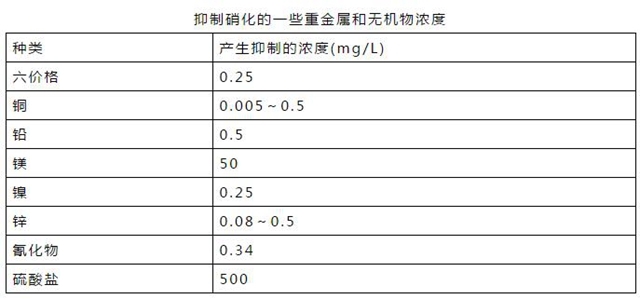某些重金屬離子、絡合陰離子、氰化物以及一些有機物質(zhì)會干擾或破壞硝化細菌的正常生理活動。當這些物質(zhì)在污水中的濃度較高,便會抑制生物硝化的正常運行。例如,當鉛離子大于0.5mg/L、酚大于5.6mg/L、硫脲大于0.076mg/L時,硝化均會受到抑制。有趣的是,當NH3-N濃度大于200mg/L時,也會對硝化過程產(chǎn)生抑制,但城市污水中一般不會有如此高的NH3-N濃度。