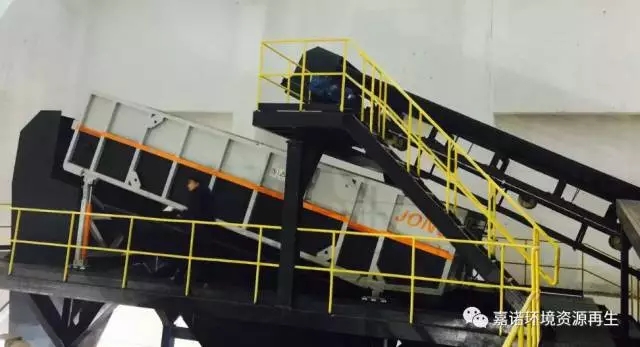 該混合城市生活垃圾預(yù)處理系統(tǒng),可以分選出混合生活垃圾中的鐵磁性金屬、不可燃物(玻璃、石頭、灰渣等)及可燃物。該項(xiàng)目中,蘇州嘉諾采用奧地利林德(Lindner)破碎機(jī)技術(shù),將可燃物破碎成80mm左右的燃料(SRF)進(jìn)行焚燒。