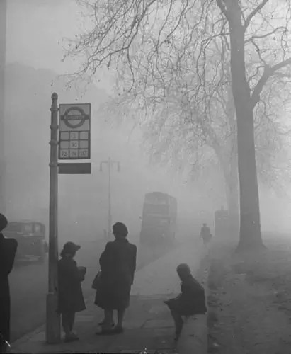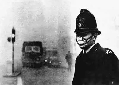 1952年12月5日開始的一星期內(nèi),倫敦市民開始感到呼吸困難、眼睛刺痛,發(fā)生哮喘、咳嗽的癥狀,倫敦醫(yī)院由于呼吸道疾病患者劇增而一時爆滿,倫敦城內(nèi)到處都可以聽到咳嗽聲。