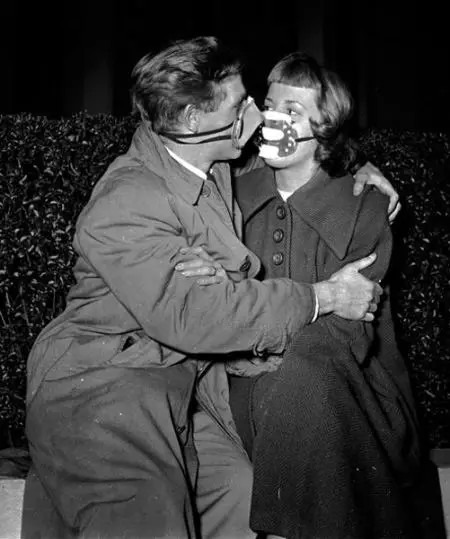 情侶們帶著口罩在戶外約會。