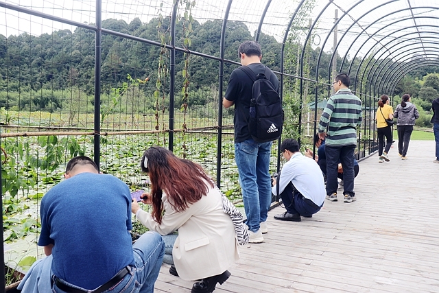 當(dāng)然,作為水處理行業(yè)的從業(yè)者,一路行來(lái),與會(huì)成員自然而然會(huì)更加關(guān)注水質(zhì)情況,時(shí)不時(shí)進(jìn)行交流和探討。行至水塘邊,也會(huì)忍不住被滿池綠波所吸引,即使過(guò)了鮮花怒放的時(shí)節(jié),依舊不減看到池清草長(zhǎng)的熱情。