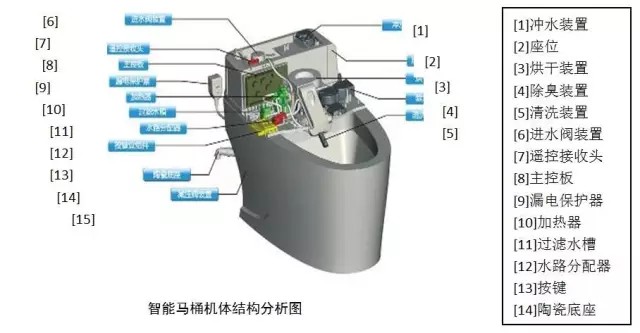 通過下面的圖我們可以初步了解一下智能馬桶的機體構成。