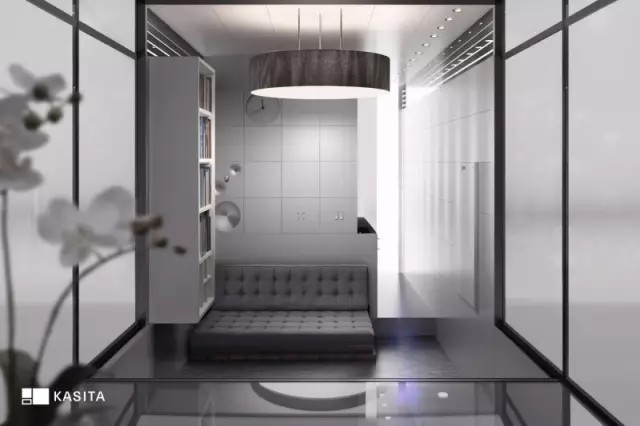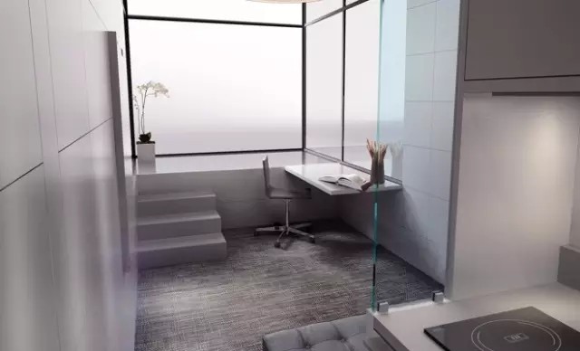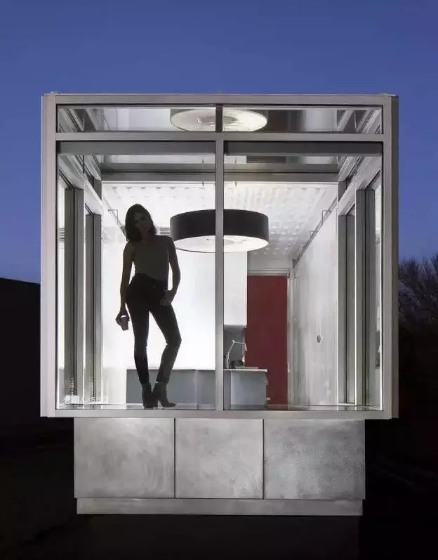 樣板房看上去還是垃圾箱的形狀,格調(diào)卻要高很多。用特殊玻璃SageGlass制成的落地窗,不僅看起來高端大氣上檔次,還能根據(jù)室外陽光強(qiáng)度自動遮光。