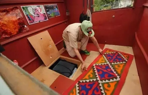 看到威爾遜歡樂地從垃圾箱里蹦進(jìn)蹦出,可不要以為這是什么一時興起的行為藝術(shù),因為他在垃圾箱里已經(jīng)住了一年,還把小小的居住空間,升級成了這樣的極簡智能住宅。