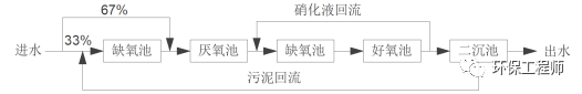 該工藝適合原水中TN含量比較高的廢水,只要缺氧池的容積設(shè)計的合理可以完全反硝化,從而為厭氧釋磷提供良好的厭氧環(huán)境。