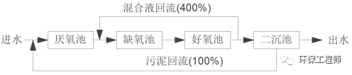 A2/O這是一個很成熟的脫氮除磷工藝,后續(xù)介紹的其他脫氮處理工藝基本上是為克服A2/O工藝的缺點而進(jìn)行改動的,從而在節(jié)能的基礎(chǔ)之上滿足出水要求。