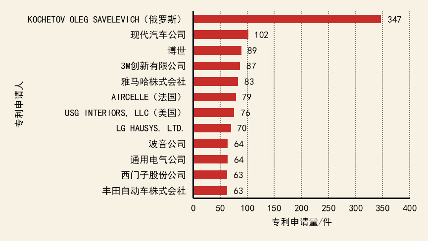 物理污染控制核心專利持有機構分布