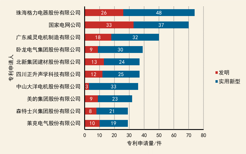 中國企業(yè)在該技術領域專利申請以實用新型為主,大部分企業(yè)實用新型專利申請量占比60%以上,企業(yè)類型集中于電氣企業(yè),以機械噪聲控制居多。