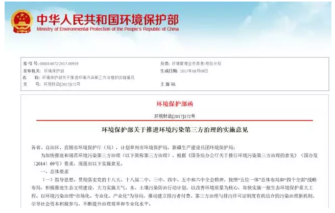 環(huán)境保護(hù)部關(guān)于推進(jìn)環(huán)境污染第三方治理的實(shí)施意見(jiàn)