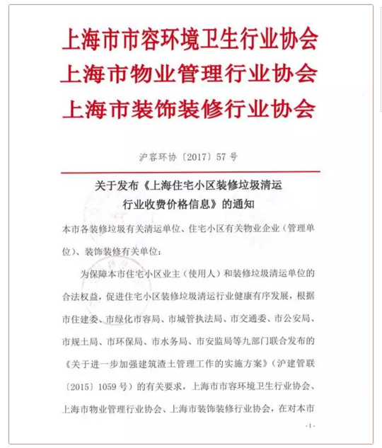 《上海市住宅小區(qū)裝修垃圾清運(yùn)行業(yè)收費(fèi)價(jià)格信息》全文內(nèi)容如下: