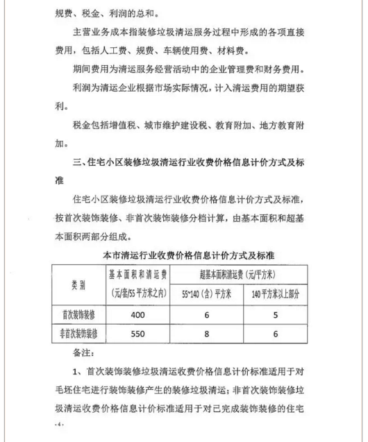 8月17日,《上海住宅小區(qū)裝修垃圾清運(yùn)行業(yè)收費(fèi)價(jià)格信息》(下稱《價(jià)格信息》)公布,《價(jià)格信息》明確了住宅小區(qū)裝修垃圾清運(yùn)行業(yè)收費(fèi)價(jià)格信息的定義,明確收費(fèi)價(jià)格主要成本構(gòu)成、計(jì)價(jià)方式、標(biāo)準(zhǔn)以及收費(fèi)主體。住宅小區(qū)裝修垃圾清運(yùn),根據(jù)首次和非首次裝飾裝修、基本面積等標(biāo)準(zhǔn)計(jì)價(jià),此外,機(jī)關(guān)、企事業(yè)單位裝飾裝修垃圾清運(yùn)處置費(fèi)將根據(jù)清運(yùn)、分揀等環(huán)節(jié),按市場(chǎng)化、全成本要素,協(xié)商收取。