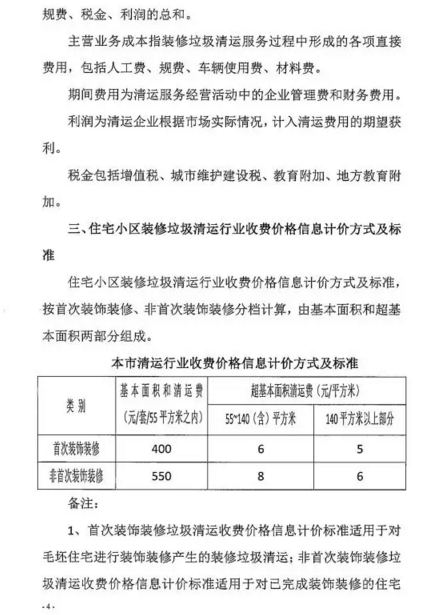 8月17日,《上海住宅小區(qū)裝修垃圾清運(yùn)行業(yè)收費(fèi)價(jià)格信息》(下稱《價(jià)格信息》)公布,《價(jià)格信息》明確了住宅小區(qū)裝修垃圾清運(yùn)行業(yè)收費(fèi)價(jià)格信息的定義,明確收費(fèi)價(jià)格主要成本構(gòu)成、計(jì)價(jià)方式、標(biāo)準(zhǔn)以及收費(fèi)主體。住宅小區(qū)裝修垃圾清運(yùn),根據(jù)首次和非首次裝飾裝修、基本面積等標(biāo)準(zhǔn)計(jì)價(jià),此外,機(jī)關(guān)、企事業(yè)單位裝飾裝修垃圾清運(yùn)處置費(fèi)將根據(jù)清運(yùn)、分揀等環(huán)節(jié),按市場(chǎng)化、全成本要素,協(xié)商收取。