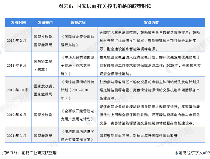 在核電消納方面,“十三五”以來,國家發(fā)改委、國家能源局等相關(guān)部門也陸續(xù)出臺相關(guān)政策推進核電消納工作,具體內(nèi)容包括擴大核電消納范圍、實行保障性消納政策等。