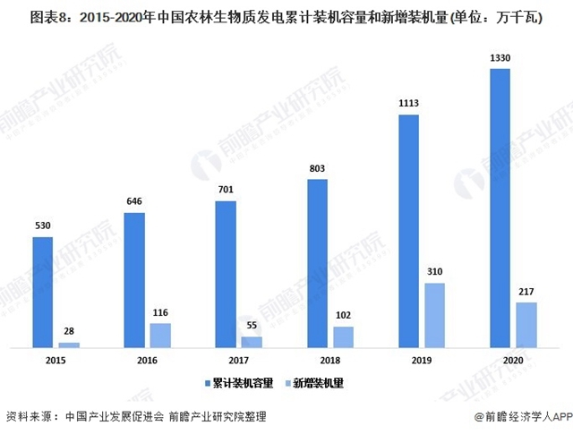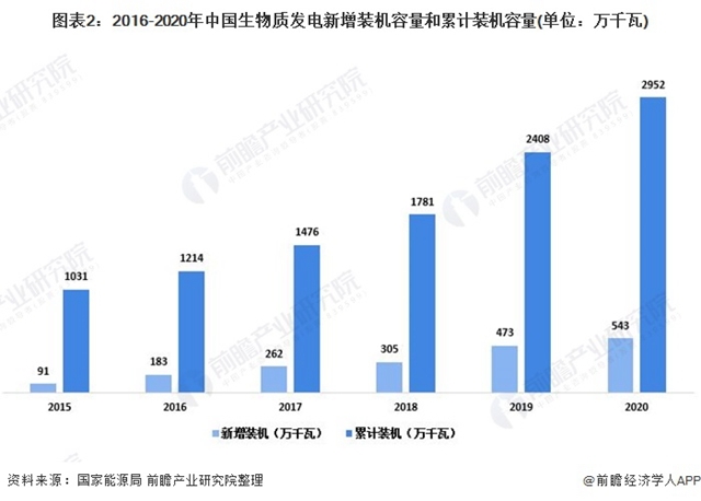 在國家大力鼓勵和支持發(fā)展可再生能源,以及生物質(zhì)能發(fā)電投資熱情高漲,各類生物質(zhì)發(fā)電項目紛紛建設(shè)投產(chǎn)等推動下,我國生物質(zhì)能發(fā)電技術(shù)產(chǎn)業(yè)呈現(xiàn)出全面加速的發(fā)展態(tài)勢。2020年,生物質(zhì)發(fā)電新增裝機543萬千瓦,累計裝機達2952萬千瓦。我國生物質(zhì)發(fā)電裝機容量已經(jīng)是連續(xù)三年列世界第一。