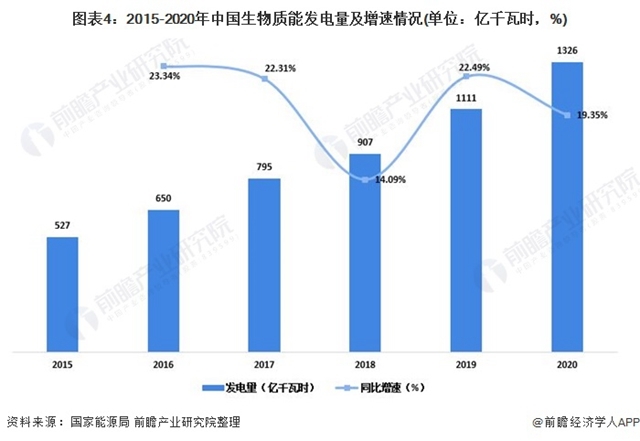 近年來,我國生物質(zhì)能發(fā)電量保持穩(wěn)步增長態(tài)勢。2020年,中國生物質(zhì)年發(fā)電量達到1326億千瓦時,同比增長19.35%。