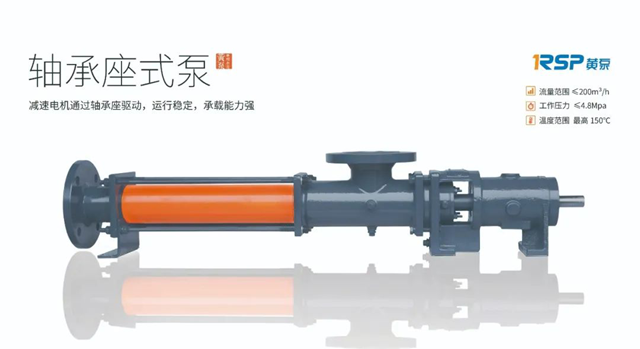 其中第一款軸承座式泵通過(guò)軸承座驅(qū)動(dòng),運(yùn)行穩(wěn)定,承載能力強(qiáng),剛性好,維護(hù)方便。適合輸送有固體顆?;蚶w維,流動(dòng)性較好或一般的介質(zhì)。最大流量可輸送200m³/h,工作壓力2.4Mpa。