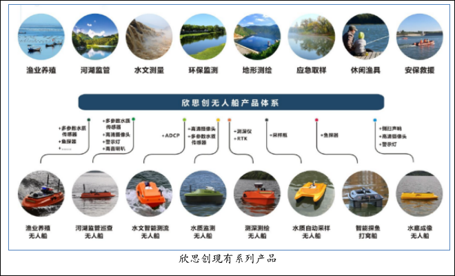 2019年6月推出受到市場十分青睞的“欣思創(chuàng)河湖監(jiān)管巡查無人船”,產(chǎn)品兼具水質(zhì)在線監(jiān)測、水面巡查管理、水底暗管排除等功能,在4G/5G信號覆蓋的水域,通過搭載的各類專業(yè)傳感器與高清攝像頭、遠(yuǎn)程喊話等相關(guān)水面巡查設(shè)備,在信息管理中心實現(xiàn)遠(yuǎn)程水質(zhì)實時監(jiān)測與水域巡查監(jiān)管的工作目標(biāo)。目前此產(chǎn)品已經(jīng)在水生態(tài)環(huán)境智慧監(jiān)測、應(yīng)急水污染事故監(jiān)測、河長制管理、河湖監(jiān)管體系等環(huán)保監(jiān)管領(lǐng)域得到了廣泛的應(yīng)用。