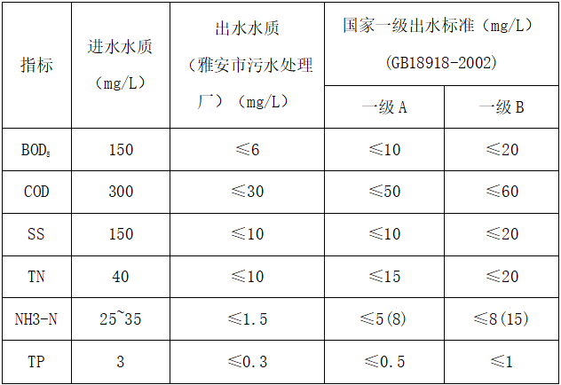 市本級(jí)項(xiàng)目“雅安市污水處理廠新建項(xiàng)目”出水標(biāo)準(zhǔn)采用四川省發(fā)布的《四川省岷江、沱江流域水污染排放標(biāo)準(zhǔn)》(DB51/2311-2016),排放指標(biāo)超過(guò)了國(guó)家對(duì)城鎮(zhèn)污水處理廠污染物排放標(biāo)準(zhǔn)(GB1891-2002)的一級(jí)標(biāo)準(zhǔn)A標(biāo)準(zhǔn),并滿足城鎮(zhèn)回用水質(zhì)要求。鄉(xiāng)鎮(zhèn)污水處理站執(zhí)行一級(jí)A標(biāo)準(zhǔn)。污水處理廠/站運(yùn)營(yíng)維護(hù)的工作內(nèi)容及質(zhì)量標(biāo)準(zhǔn)符合污水處理設(shè)施適用法律和國(guó)家行業(yè)規(guī)范、標(biāo)準(zhǔn)的每一項(xiàng)規(guī)定。