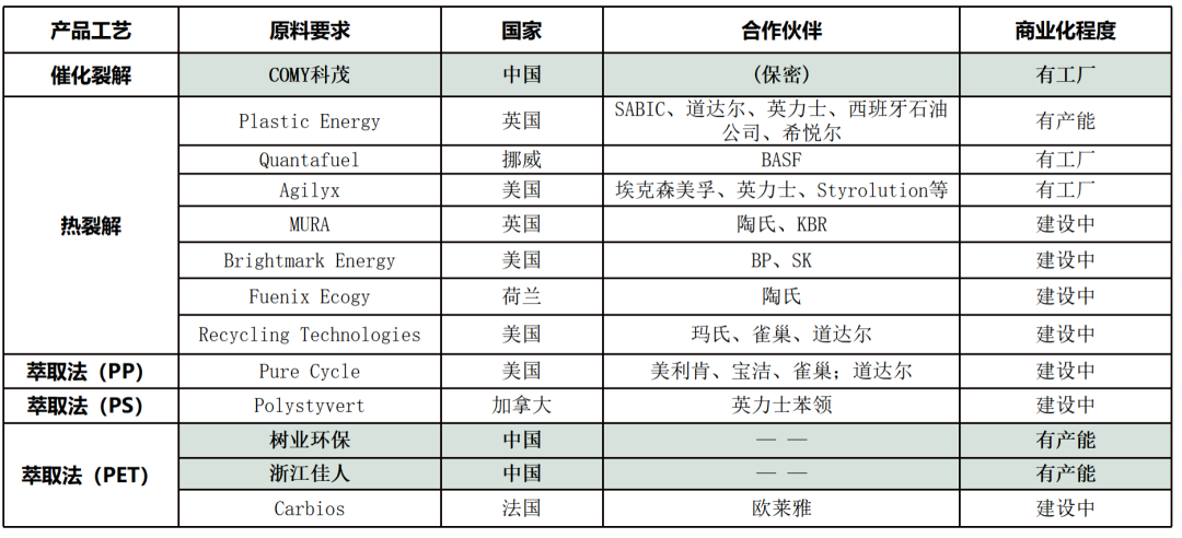 第三、巨頭布局產(chǎn)能:化學(xué)回收在全世界像樣的企業(yè),總共不過六七家左右,而巨頭的數(shù)量則是數(shù)十家。