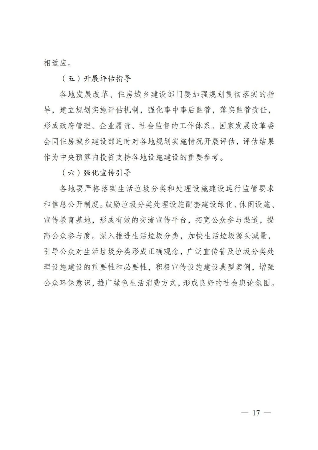 為深入貫徹習近平總書記關于生活垃圾分類的重要批示指示精神,落實黨中央、國務院決策部署要求,統(tǒng)籌推進“十四五”城鎮(zhèn)生活垃圾分類和處理設施建設工作,加快建立分類投放、分類收集、分類運輸、分類處理的生活垃圾處理系統(tǒng),國家發(fā)展改革委、住房城鄉(xiāng)建設部組織編制了《“十四五”城鎮(zhèn)生活垃圾分類和處理設施發(fā)展規(guī)劃》?,F(xiàn)印發(fā)你們,請遵照執(zhí)行。
