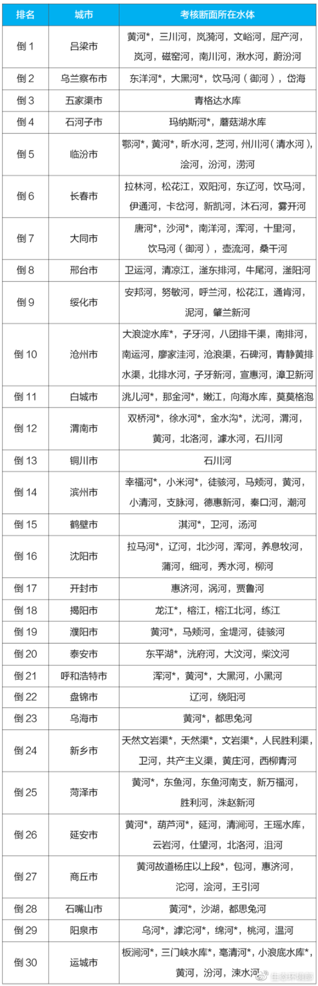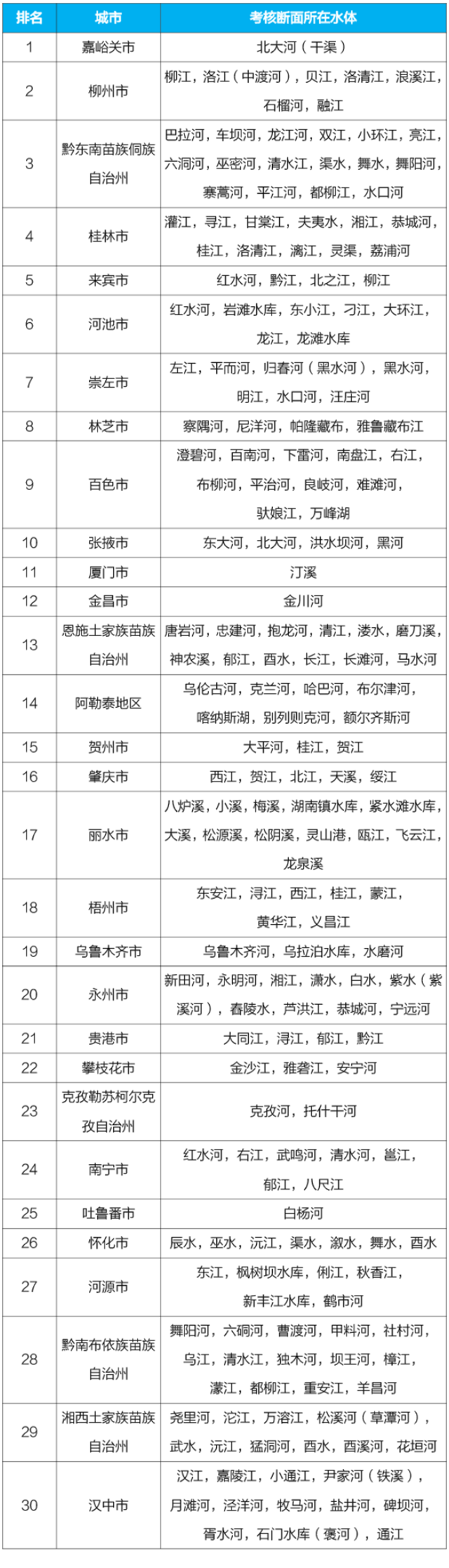 地級及以上城市國家地表水考核斷面排名