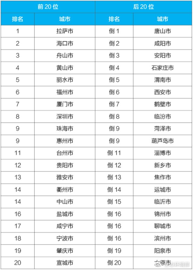 2021年4月168個重點城市排名前20位和后20位城市名單
