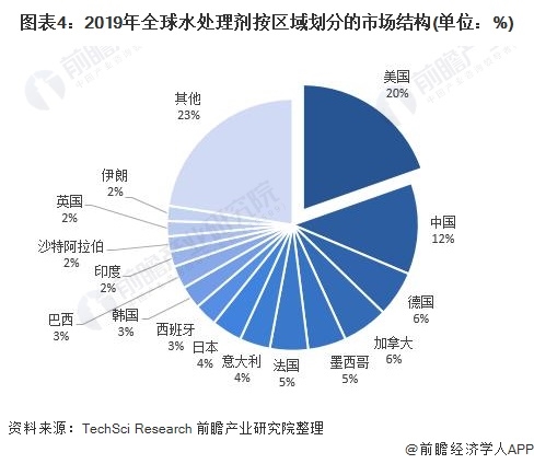 根據(jù)TechSci Research的數(shù)據(jù),2019年美國(guó)水處理藥劑市場(chǎng)約占全球水處理藥劑市場(chǎng)份額的20%,亞太地區(qū)的市場(chǎng)份額約占31%,北美洲的市場(chǎng)份額約占31%,南美洲市場(chǎng)份額約占6%,歐洲約占25%,中東約占7%。