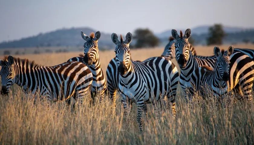 幾匹斑馬站在高高的草叢中