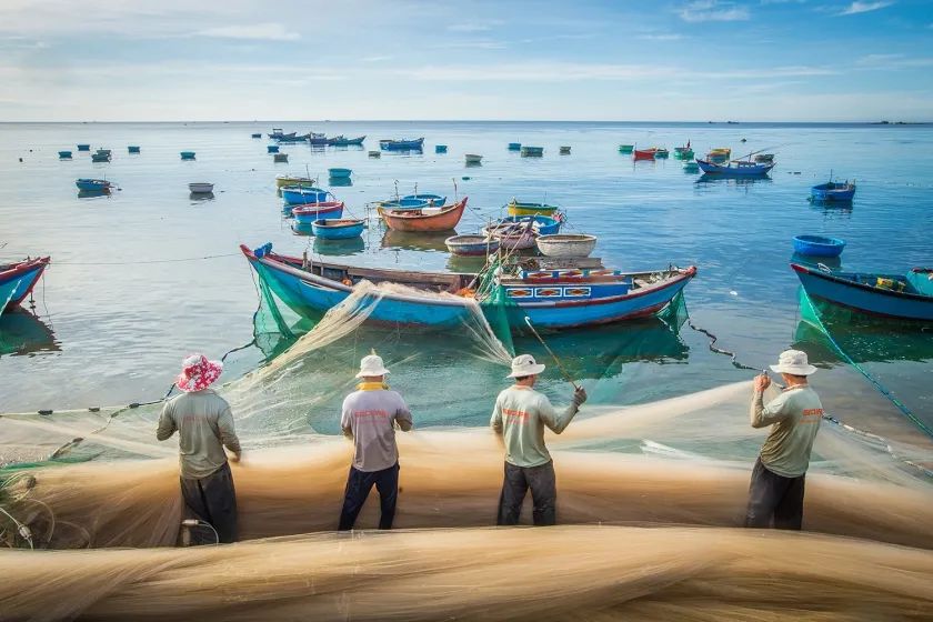 越南漁民拖網(wǎng)捕魚(yú)。
