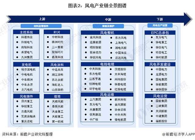 中游整機環(huán)節(jié)的金風科技、明陽智能、遠景能源、聯(lián)合動力、上海電氣等,風電電纜環(huán)節(jié)的中天科技、哦東方電纜等;風電運維環(huán)節(jié)的大唐集團、中廣核等;