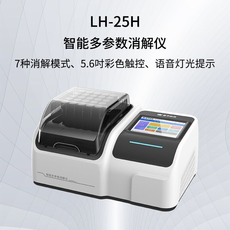 LH-25H智能型多參數(shù)水質(zhì)消解儀是連華科技自主研發(fā)的全新智能化水質(zhì)消解儀,可根據(jù)用戶需求定制型號(hào),適用多種消解環(huán)境。5.6吋高清電容觸屏操作,通過智能PID溫度控制,大幅減小溫度示值誤差,提升溫場(chǎng)均勻性。內(nèi)置COD、總磷、總氮、高錳酸鹽指數(shù)、硫酸鹽、甲醛和自定義7種消解模式,適應(yīng)多種消解實(shí)驗(yàn)需求。全新外觀架構(gòu),保護(hù)罩內(nèi)循環(huán)空氣流動(dòng),消解池頂部航空隔熱層設(shè)計(jì)讓消解流程更安全,中文智能語音播報(bào)、多色彩指示燈、引流槽設(shè)計(jì)、超溫?cái)嚯姳Wo(hù)、上位機(jī)遠(yuǎn)程控制等功能讓用戶操作更簡單、安全、便捷。
