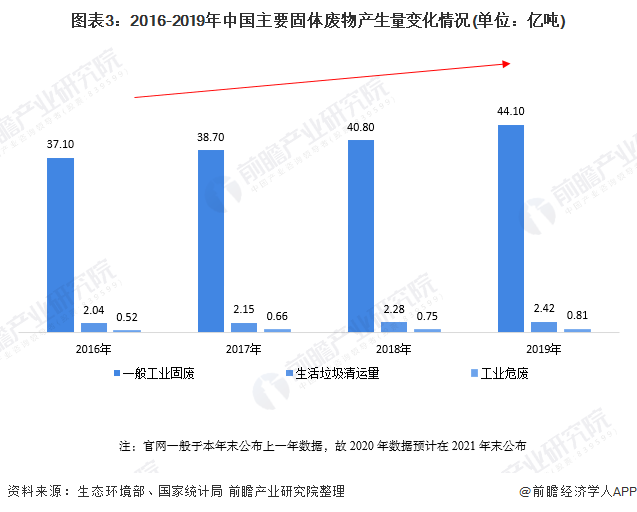 而生活垃圾清運量也從2016年的2.04億噸上升至2019年的2.42億噸。總體來看,全國固體廢物的產(chǎn)生量不斷增加,處置需求也不斷擴大。