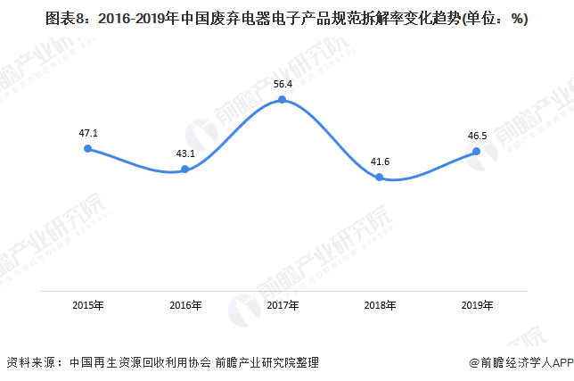 同時,從部分細分市場的利用情況來看,在廢金屬市場中,再生銅鋁鉛鋅產(chǎn)量不斷增長,2020年約為1450萬噸;在廢棄電器電子市場,規(guī)范地拆解流程是其得以有效處置加工的前提,但目前的規(guī)范拆解率還有待提升;